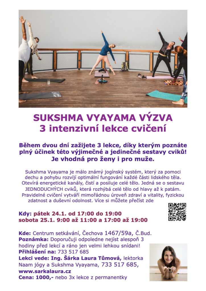Lekci vede: Ing. Šárka Laura Tůmová,lektorka Naam jógy a Sukshma Vyayama, 733 517 685, www.sarkalaura.cz